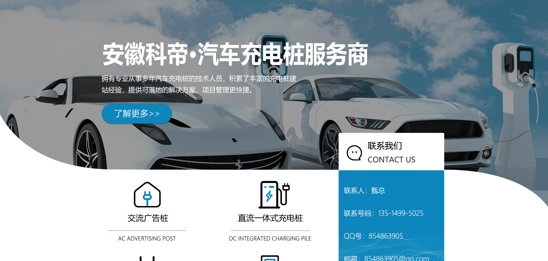 關于我們安徽科帝新能源科技有限公司坐落于安徽省會-合肥,是一家研發(fā)、生產智能充電樁設備,汽車充電站后臺監(jiān)控管理系統和生產高壓開關設備的企業(yè).由專門的研發(fā)團隊、管理團隊按照現代化企業(yè)制度規(guī)范設立的有限責任公司。致力于為能源智能、安全的應用和節(jié)能減排提供整體的技術與產品解決方案??频奂邪l(fā)、設計、生產、銷售以及服務于一體,在電動汽車充電方案,充電設施建設和城市配電方面擁有廣泛的技術研究及經驗積累,為客戶提供安全、智能的充電設備及充電運營站建設一體化解決方案。并堅持以人為本、質量為先、顧客至上、不斷創(chuàng)新”的企業(yè)理念,為能源行業(yè)的發(fā)展、節(jié)能減排做出重大的貢獻。公司擁有豐富的產品種類,目前科帝已研發(fā)生產了三十多種產品,充電設備有直流一體式充電樁、直流分體式充電樁、直流廣告樁、交流廣告樁、廣告一體樁、壁掛交直流樁;等多種充電設備;每一款產品都是精心打造,力求為客戶提供優(yōu)越的用戶體驗。展望未來科帝將通過持續(xù)的自...